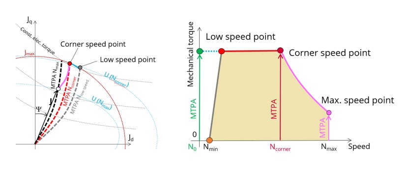 In the results, the performance of the machine at the corner speed point and for the maximum speed set by the user are presented.