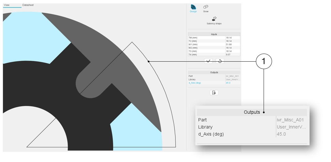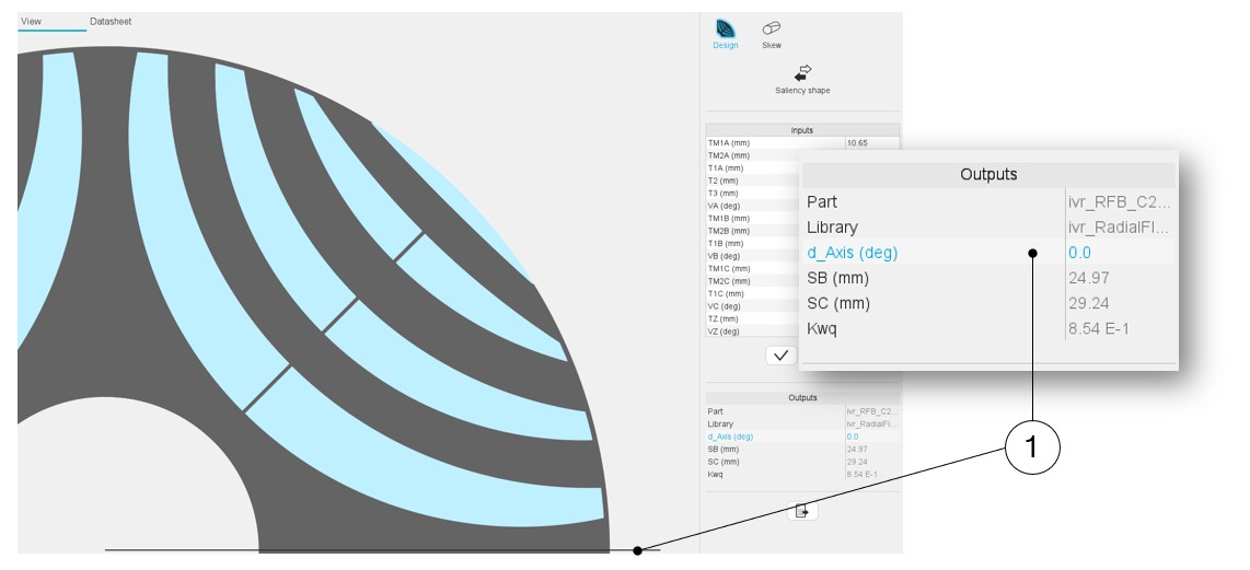 The rotor d-axis location is an output parameter (read only data) of saliency parts. It completes the description of the topology, and it is automatically used to define the relative position between the axis of the stator phase 1 (reference phase) and the rotor D-axis position for performing the tests when needed.