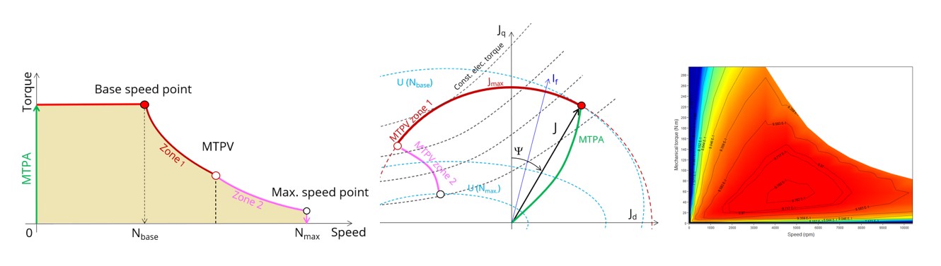 The aim of the test “Performance mapping – Sine wave – Motor – Efficiency map” is to characterize the behavior of the machine in the "Torque-Speed" area.