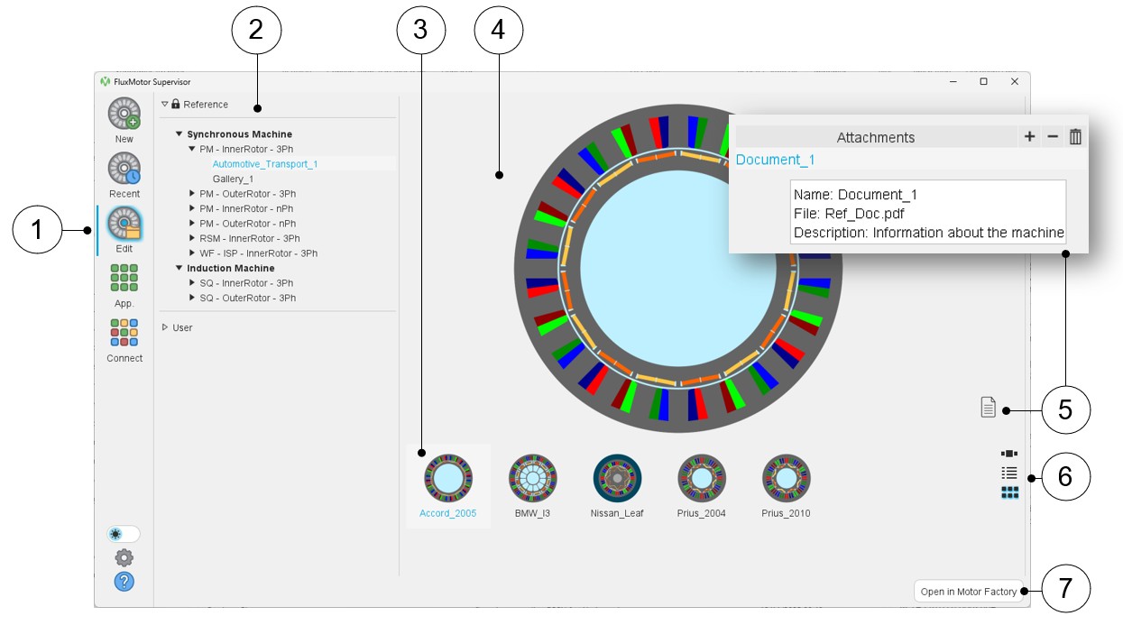 | 6 | Once selected, the motor can be opened in Motor Factory either by double clicking on the corresponding icon or by clicking on the button “Open in Motor Factory”. |