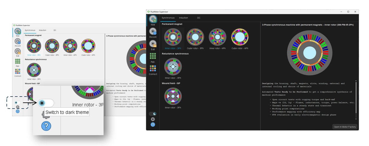 - The dedicated design environment helps user define machines within minutes. Then, using a step-by-step process, a dedicated interface will help users to fully design the machine, the rotor, the stator, the cooling topology, and the materials.