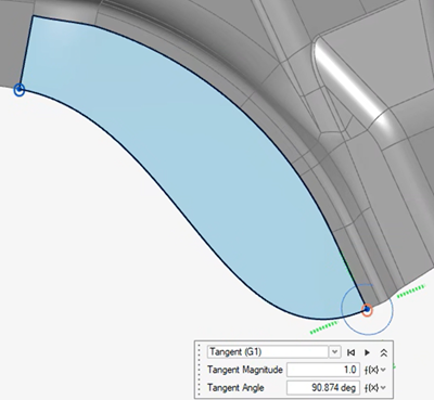 - Enter a Tangent Magnitude in the microdialog to adjust the magnitude of the blend curve at the selected point.