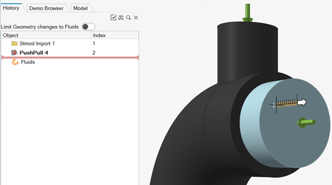 For example, if you used Push/Pull on a Fluids model, selecting Limit Geometry changes to Fluids would ensure the push-pull operation is visible only in the Fluids profile.