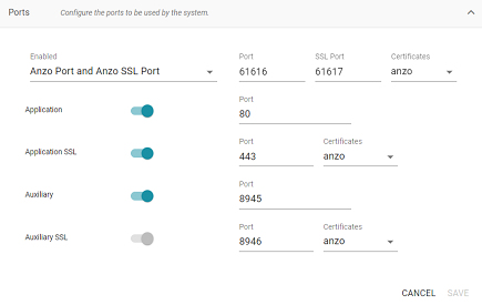 3. Click the Certificates drop-down list for each of the enabled SSL ports and select the new certificate. Then click Save.