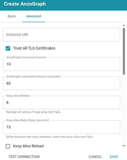 This topic describes the connection settings that are available on the Advanced tab when you add a static Graph Lakehouse connection or the Configuration tab when you edit an existing connection.
