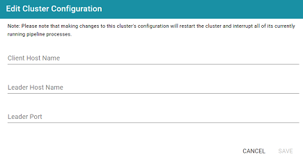 - On the Edit Cluster Configuration dialog box, complete the Client and Leader Host Name fields. You do not need to specify the Leader Port as Graph Studio automatically populates the port once the connection is established.