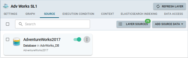 After selecting the desired source data, click Add at the bottom right of the Add Source Data screen. The selected data sources are displayed in the Source tab of the Data Layer view: