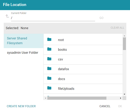 - Find and select the directory where the FLDS for this dataset should be created. If needed, you can click Create New Folder to create a new directory. Then click OK to close the dialog box and return to the Create Dataset screen.