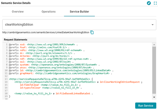 7. Click the Run Service button to clear the edition. Anzo returns a response such as the following example when the request is processed: