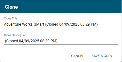 - In the Clone dialog box you have the option to edit the new graphmart name in the Clone Title field and modify the description in the Clone Description field.