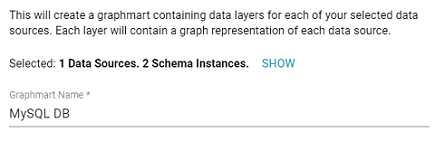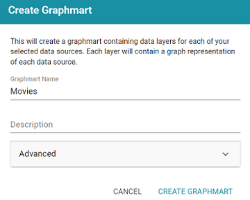 - On the Create Graphmart dialog box, the Graphmart Name is populated with the name of the selected source. If multiple sources were selected, the Graphmart Name is blank. Edit the Graphmart Name if necessary and add an optional Description for the new graphmart.