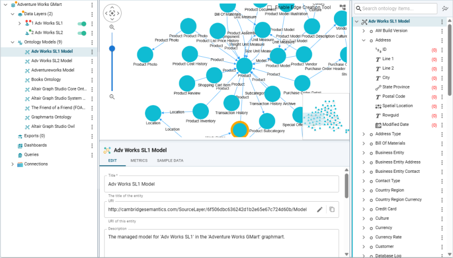 For example, the following composite frame is displayed when an ontology model is selected