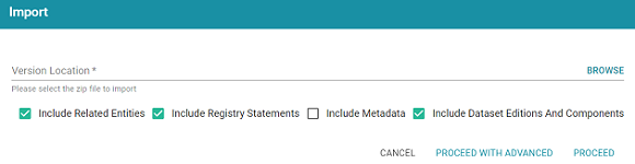 - Include Dataset Editions And Components: This option specifies whether to import all of the editions and components for each dataset included in the import package.