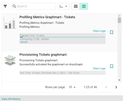 Do you want to install C++ UDXs packaged with AnzoGraph DB?prompt. For information about the C++ dependencies, see Installing the C++ Dependencies. - Click Run Profiling to start generating the profile. The process may take several minutes, especially for large volumes of data. You can check the status of the process in the Activity Log. The Activity Log also presents the option to stop the profiling process by clicking Cancel under the progress bar for the task. For example: