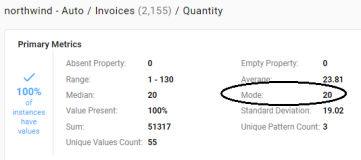 For each numeric property, this metric computes the mode of all of the values.