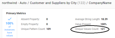 For each property, this metric counts the total number of unique value patterns.