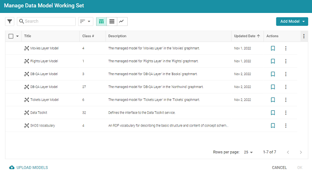 - On the bottom left corner of the screen, click Upload Models. The Upload Data Models dialog box opens.