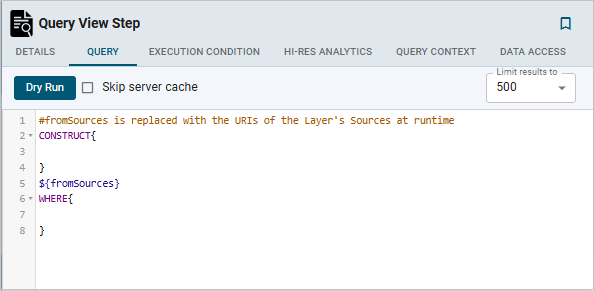 7. Edit the provided template to compose the CONSTRUCT query the step should run. For information about CONSTRUCT queries, see CONSTRUCT in the W3C SPARQL 1.1 Query Language specification.