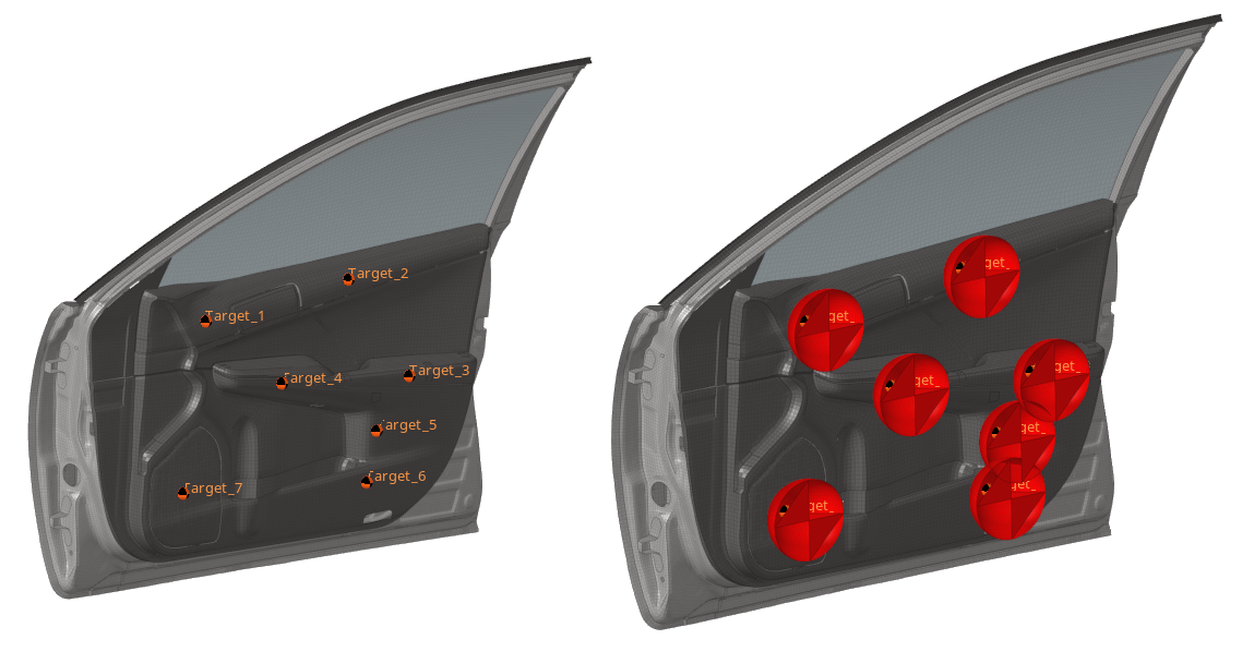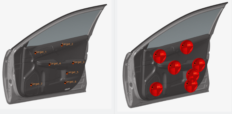 For example, Figure 60 shows multiple impact simulations on a door trim using a spherical