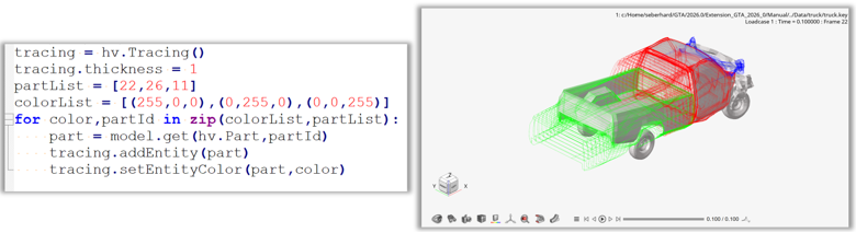 The Tracing() class supports all the features for tracing nodes, parts, MBD systems and lines.