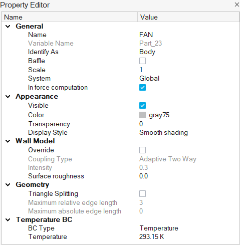 Body panels are modeled with a wall boundary condition and a zero velocity is