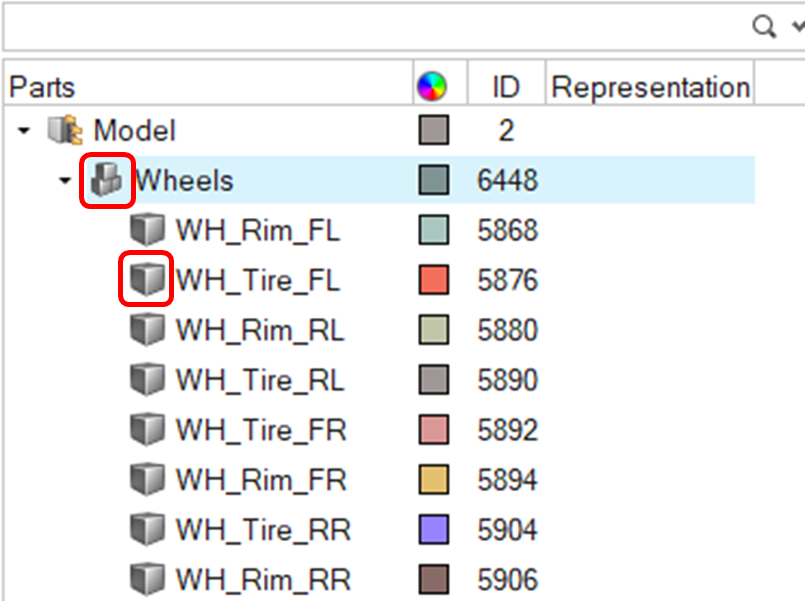 The created part group is named Wheels, the same as the selected assembly. The group can be renamed by clicking on the group name and entering a new.Figure 19.