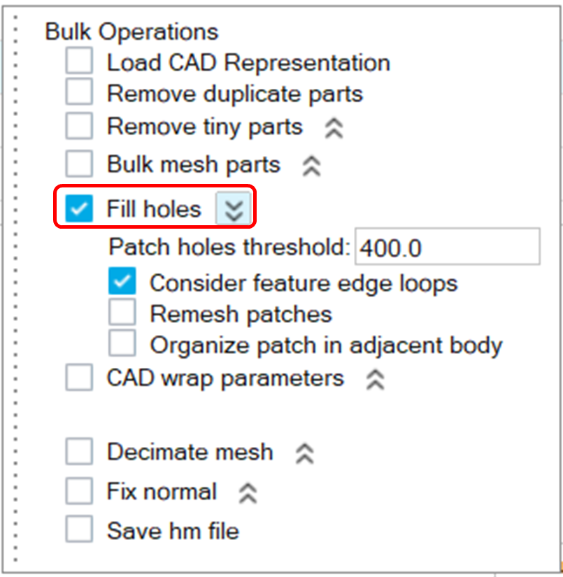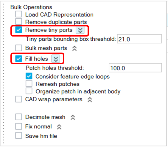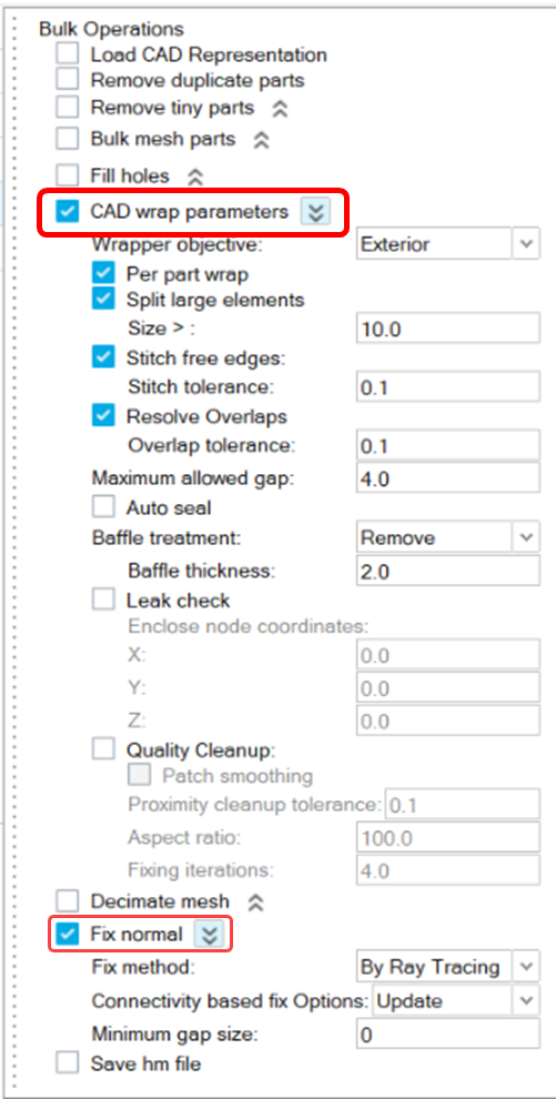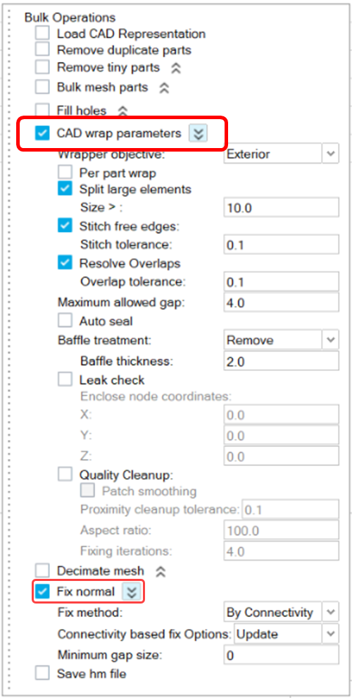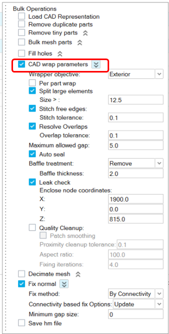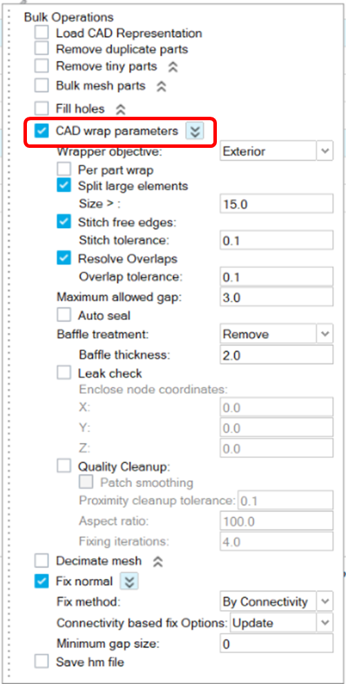 double arrows to expand the CAD wrap parameters settings and specify them as