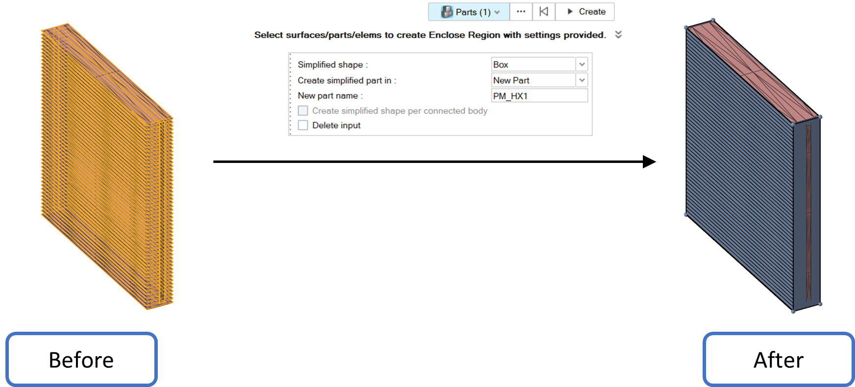 Note: The box can be created by either navigating to: , or by going to: . In this case the latter is preferred because the heat exchangers are angled and the Simplify Region tool allows for easier and faster creation of a box.