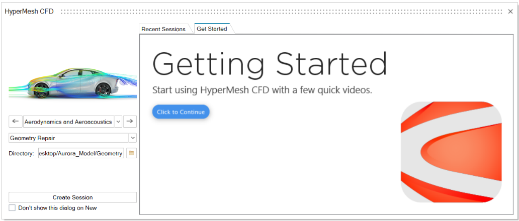 If HyperMesh CFD is already launched, you can create a new session by going to File → New, or by clicking the New Model icon in the Home ribbon.Figure 3.