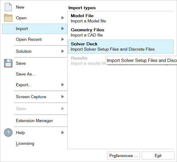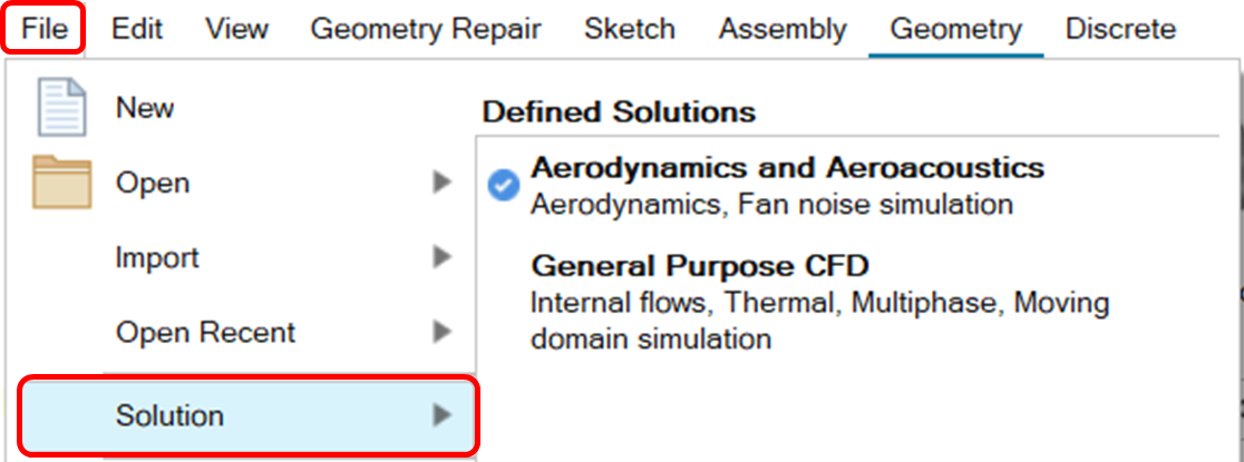 You can also change the Solution and Modelling Environment after the startup dialog:- To change the solution, go to: .