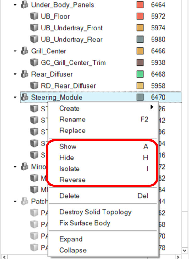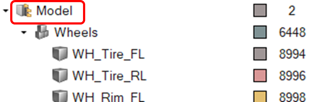 Powertrain Parts Per Assembly Name Front_Suspension, Rear_Suspension, HVAC, Cooling_Module,Steering_Module, Electronic_Module Wheels Parts Per Assembly Name Wheels HX_Core_Elements Parts Per Parts Name CM_HX1_Core,CM_HX2_Core,