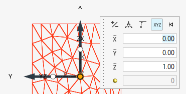 A temporary coordinate system appears on the model and a corresponding guide bar opens with additional options. -