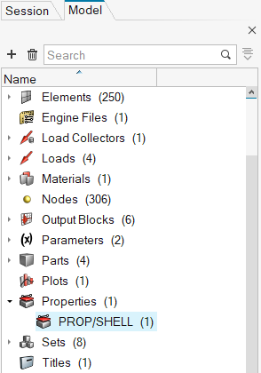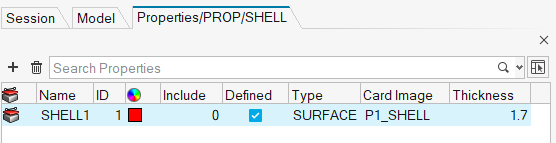 Tip: If necessary, you can enable the Model Browser from the menu bar by clicking .The Properties/PROP/SHELL Browser opens. -