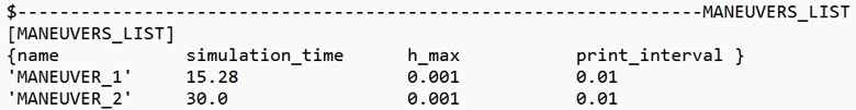 The maximum simulation time for each maneuver is specified in the Altair Drive File