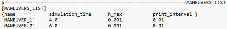 Figure 1. Maneuvers List Block for a Power-off in a Straight Line Event
