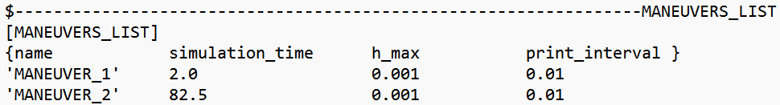 The total simulation time for each maneuver is specified in the Altair Drive File