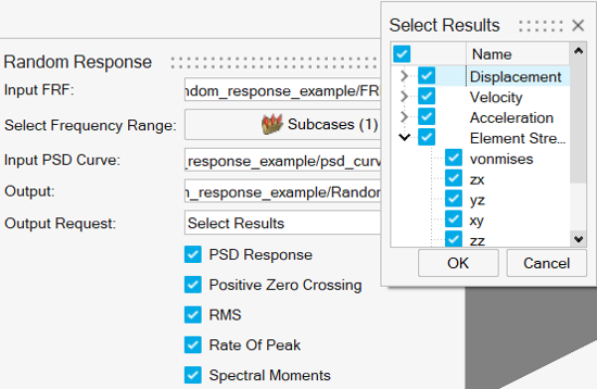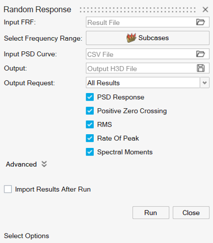 Use the Random Response tool to perform a random response analysis using an existing FRF file.