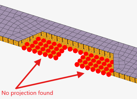 - Uses the solver projection logic function to position the nodes on the surface of the elements.