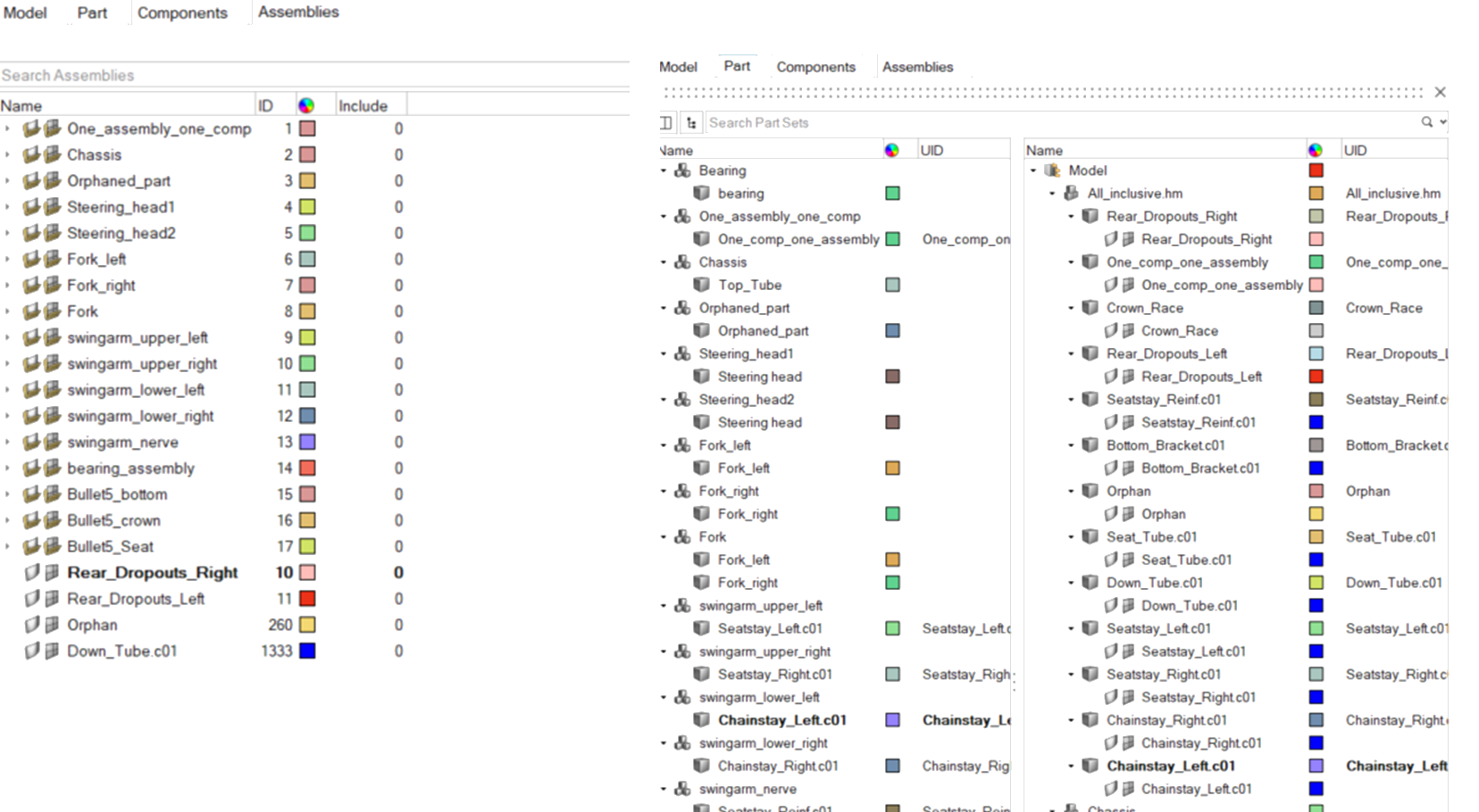 Assemblies can be mapped to part sets using the automatic Create Part Sets tool.