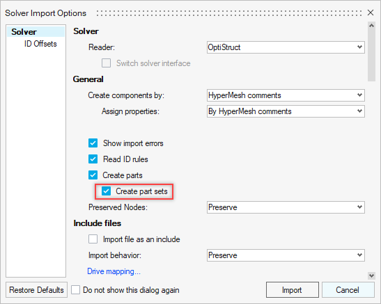 Figure 2. Create Part Sets During Solver Deck Import