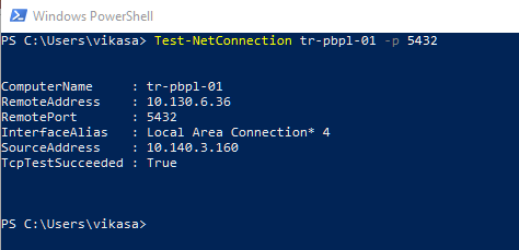 Test-NetConnection <Server Name> -p <Port Number>Figure 5. Example