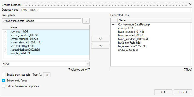 Note: If the solid elements exist in the CAE data, selecting Extract solid faces means the prediction will be made using faces from the outer surfaces, and results will only be visible on the outer surface. The internal 3D elements do not contribute. Extract solid faces is selected by default because it ensures faster prediction time.If Extract solid faces is not selected, predictions will be made for (and using) all nodes/elements throughout the interior of the solid body as well.