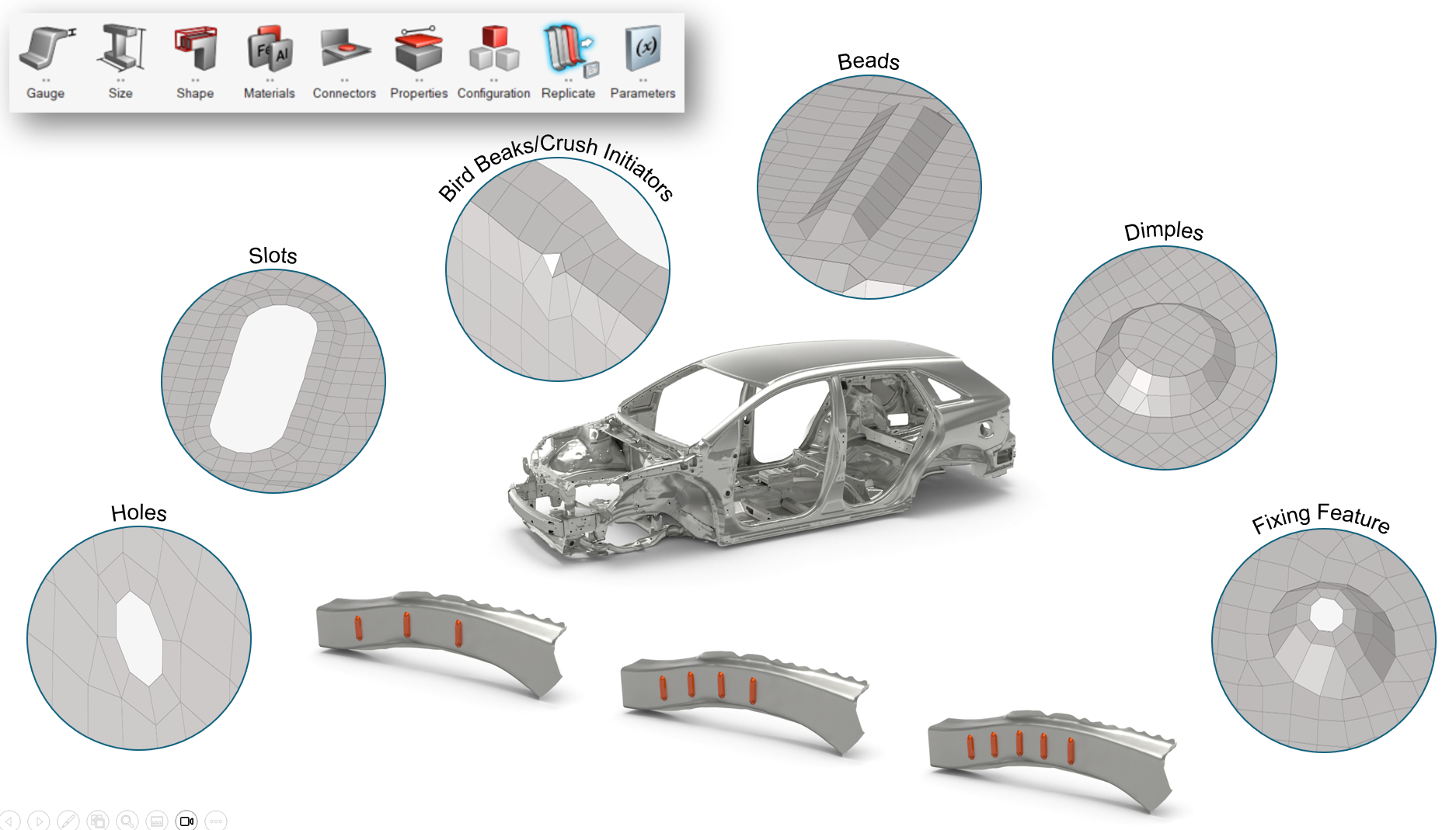 features, such as beads, bird beaks, dimples, and so on, or stiffeners