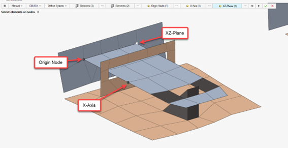 - The coordinate system is automatically defined based on the vector from node