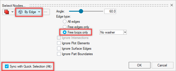 selection. Select By Edge and Free loops