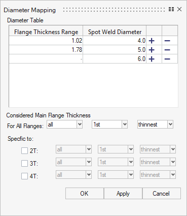 - Seam imprint allows heat affected zones (HAZ) to be merged in close areas. In this situation, one element might touch the weld elements from two different connectors. Do not share zone elements prevents zone elements from being shared.