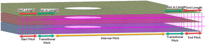 - The length of the transitional area between the Start/End Pitch and the Internal Pitch.