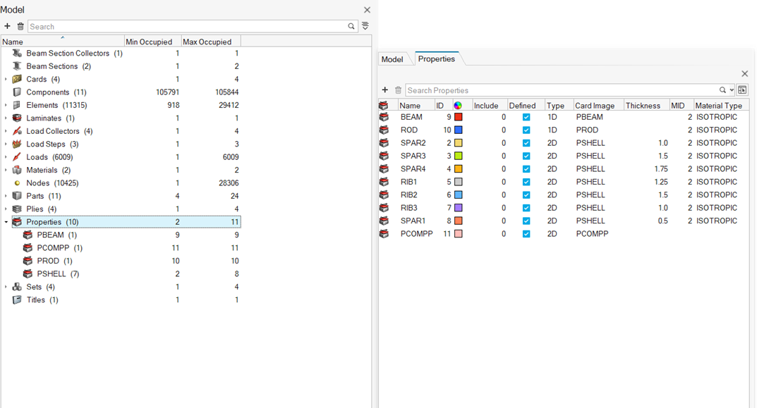 sub-entity view, such as Materials/MAT5, creates an entity with the selected
