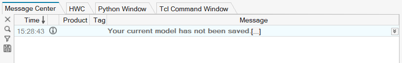 application. If the HWC Console, Python Window, and/or the Tcl Command Window are also open, the Message Center opens as a separate tab.Figure 1. Message Center, docked and opened as a separate