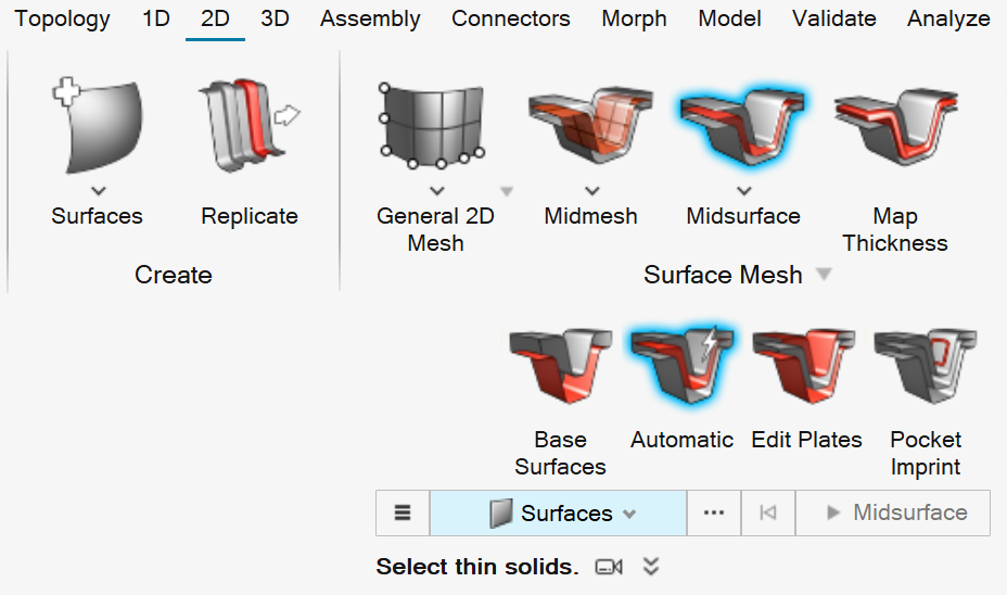 Extract the midsurface of thin solids, and review and edit midsurface plates.